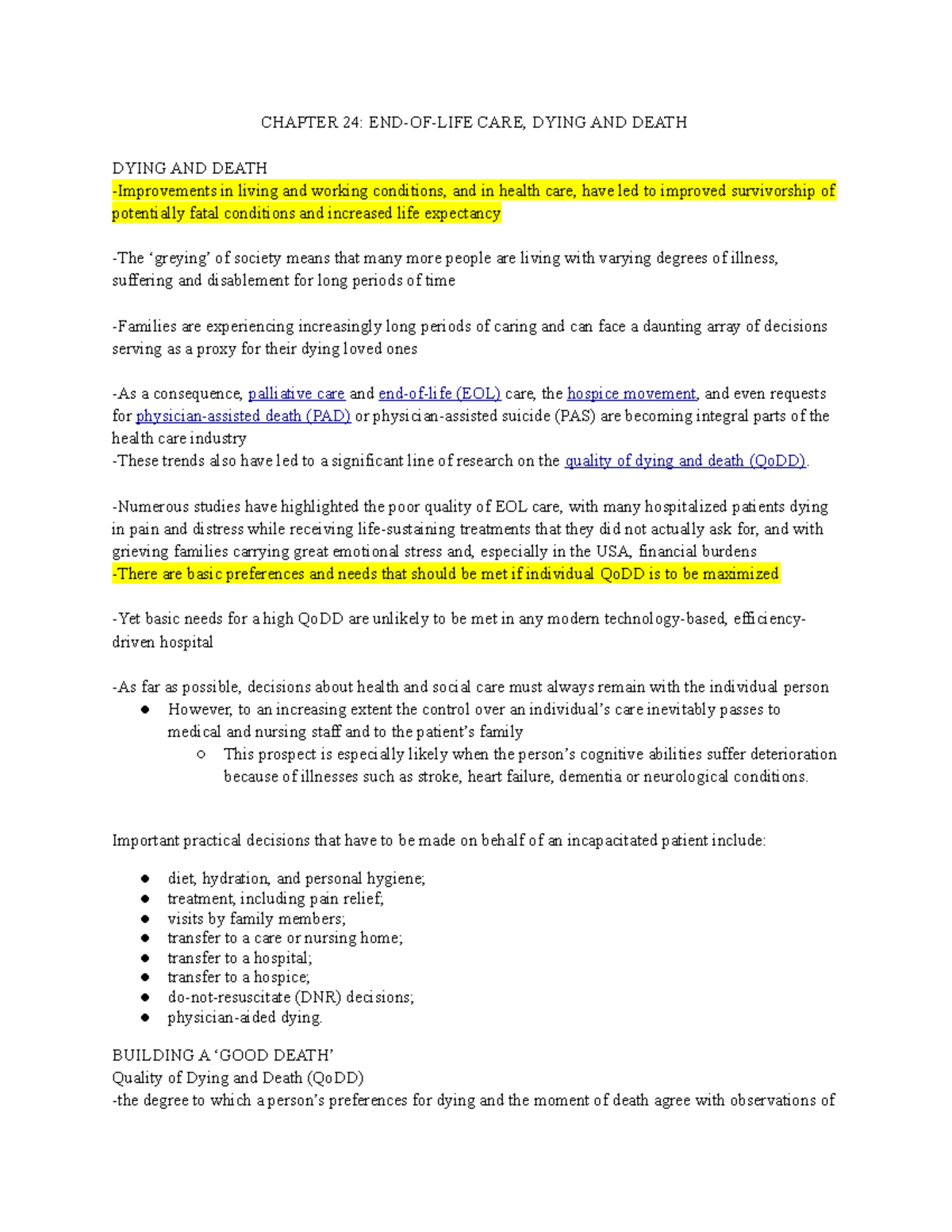 Chapter 24 End Of Life Care Dying And Death Chapter 24 End Of Life Care Dying And Death Dying Studocu